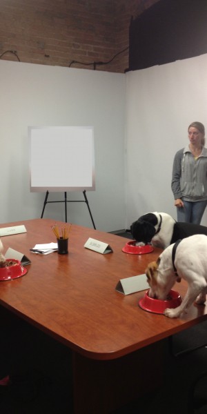 For my last project, I was involved in a video shoot for a major brand of dog food. This project required several well trained dogs to perform various tasks that would end up looking as though they were a focus group sitting around a conference table discussing the merits of this particular canned food. I couldn’t think of any better dogs than those that belong to my fellow trainers at AnimalSense.